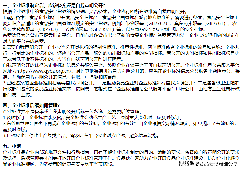 企业尺度是企业内部的规范文件和步履指南,一种是出产的食物,需制定响应的企业尺度做为组织出产的根据。进一步提拔产质量量、保障食物平安、规范内部办理、加强市场所作力并鞭策手艺立异。